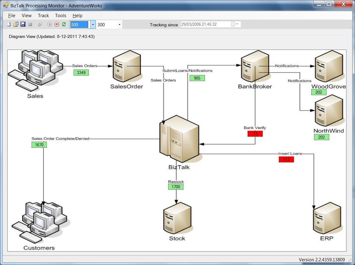 Since quite some time I am developing a BizTalk monitoring tool, called BizTalk Processing Monitor (or BPM). This tool is different from most other BizTalk monitoring tools in that it does not monitor end points, but it gives (near) realtime insight if messages flow through your BizTalk Group. If there are any interruptions, you get warned. To retrieve this kind of information, BPM uses the Tracking database.